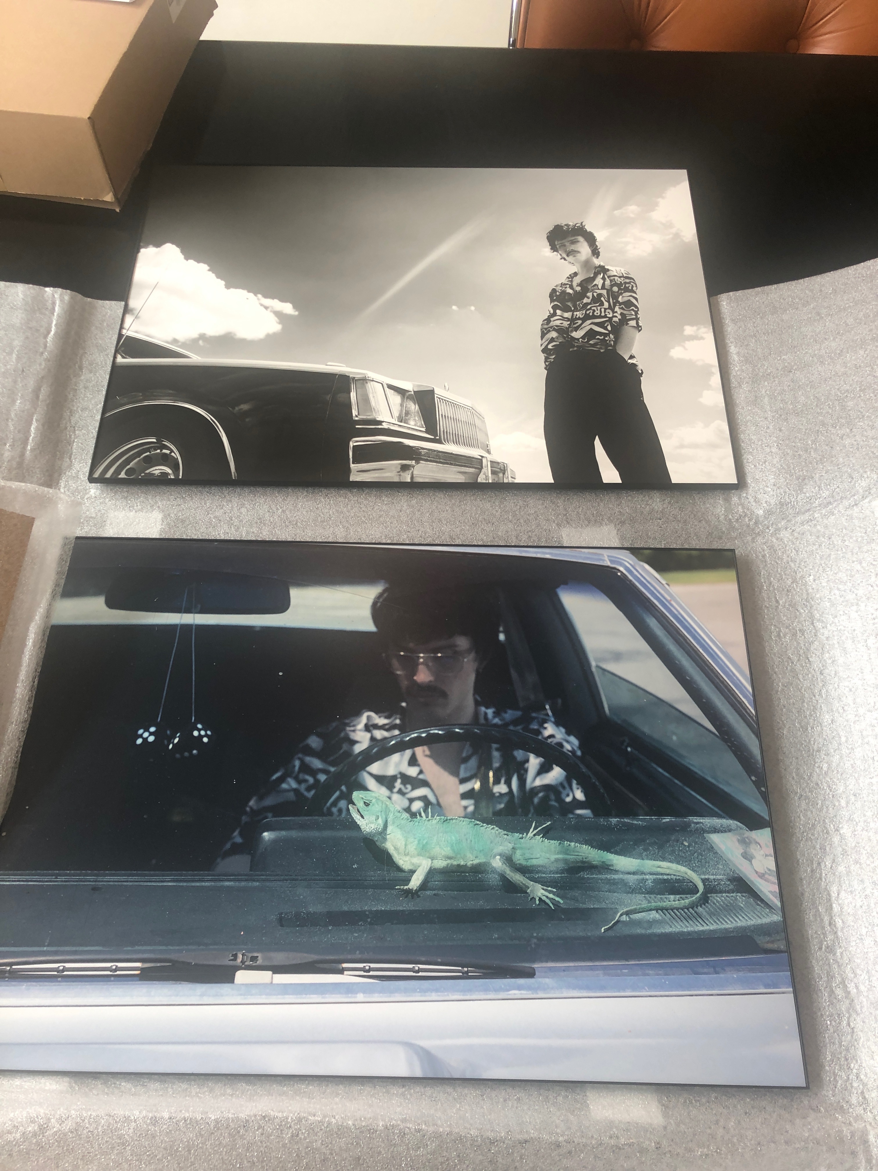 All prints are consist of UV prints on dibond and a small ( ± 2mm ! ) aluminium frame ( depth ± 1,5 cm ) in black of titanium colour. Including an aluminium U-profile for hanging .